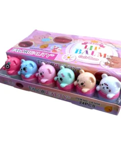 Bálsamos labiales con adorable diseño de ositos. Cajita con 24 piezas ideales para el cuidado diario.