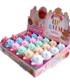 La **Cajita de 24 Lip Balms de Ositos** es un éxito de ventas gracias a su diseño **kawaii** y su característica de **cambio de color por pH** (mágico). Este pack de **mayoreo** no solo atrae a clientes por su aspecto, sino también por su **fórmula altamente hidratante** que calma y nutre los labios secos. Cada osito es un bálsamo labial que se convierte en un tono de rosa único para cada usuario.